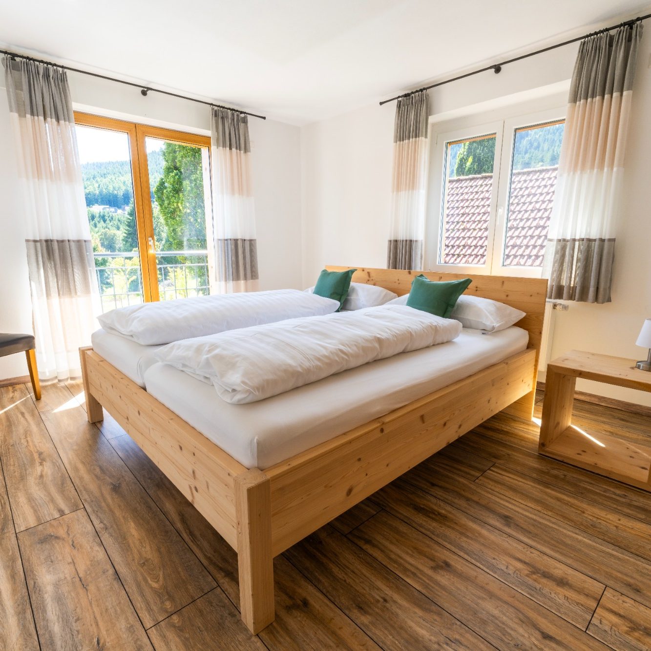 Einzigartige und hochwertige Ferienwohnung mit zwei große Doppelbetten, Echtholz (Zirbe und Fichte), Ausstattung und wunderschönem Aussicht vom Balkon ins Tal.