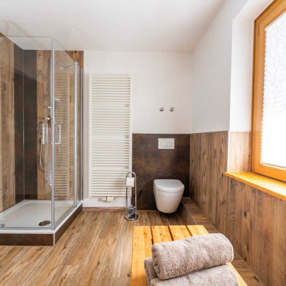 Badezimmer & WC: Ein großes Badezimmer mit neuwertigen Armaturen sowie ein separates Gäste-WC